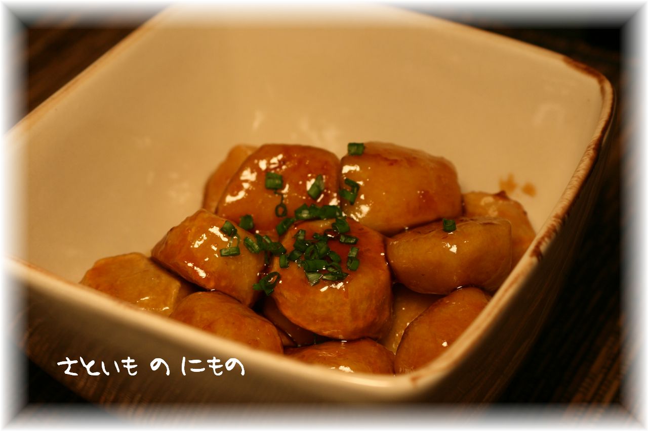今日は、固めに茹でた里芋に片栗粉をまぶして、油で揚げてから 煮てみました。