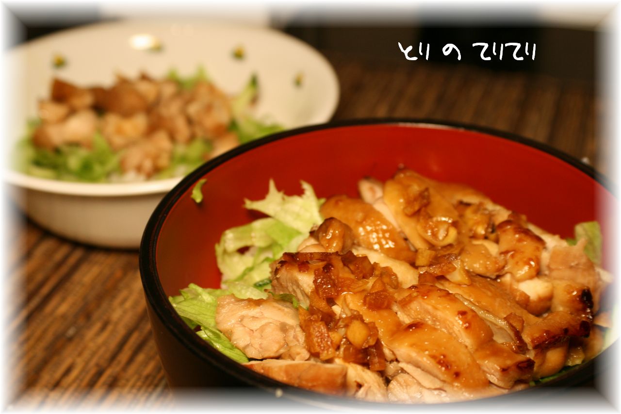 モモ肉を30分ぐらい漬けておいて、焼くだけ。(ビニール袋に入れると、後片付けも簡単~)